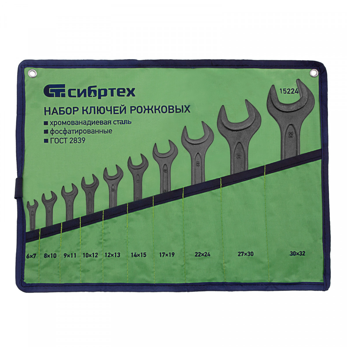 Набор ключей рожковых фосфатированных Сибртех 15224, изготовленный в соответствии с ГОСТом 2839, включает в себя 10 инструментов из стали CrV. Используется для монтажа и демонтажа шестигранных резьбовых крепежей диаметром 6-32 мм. Ключи сделаны двусторонними — на каждом конце есть губки с различным размером зева. Набор будет полезен в сервисном центре, авторемонтной мастерской, при монтаже оборудования, а также пригодится дома или на даче.