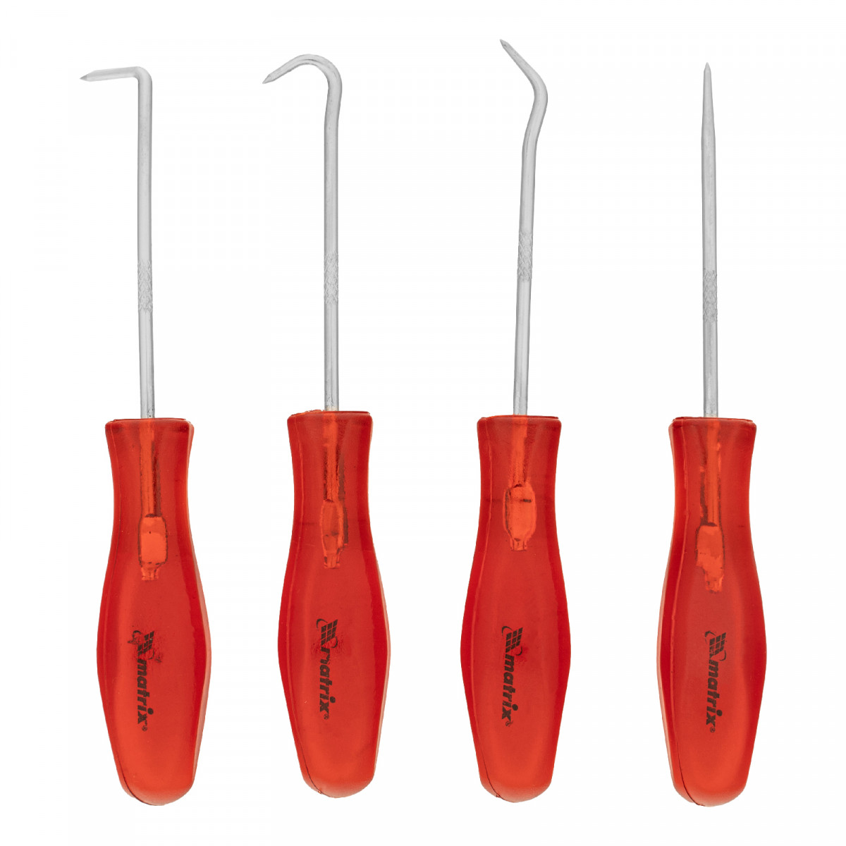 Набор крюков для слесарных работ Matrix 11761 состоит из 4 предметов длиной 155 мм — шила, полного и углового крюков, а также крюка на 90°. Набор позволяет решать разнообразные бытовые и профессиональные задачи: снимать уплотнительные кольца и сальники, размечать металлические детали, проделывать отверстия в коже, дереве и других материалах. Инструменты будут полезны при выполнении строительных, слесарных и столярных работ, пригодятся в автосервисе, а также дома или на даче.