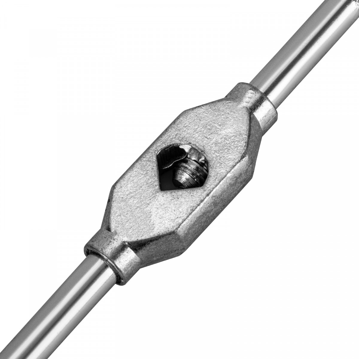 - Универсальный метчикодержатель — регулируемый винтовой механизм позволяет надежно фиксировать метчики с хвостовиками от 2,3 до 6,5 мм.
