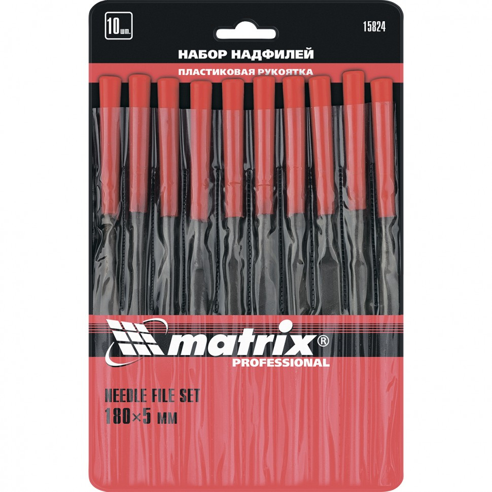 Набор надфилей, 180 х 5 мм, 10 шт, пластиковые рукоятки Matrix