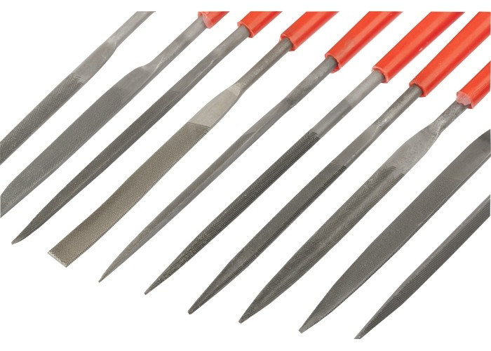 - Удобный поиск — благодаря красному цвету рукояток надфили не затеряются в рабочем пространстве.