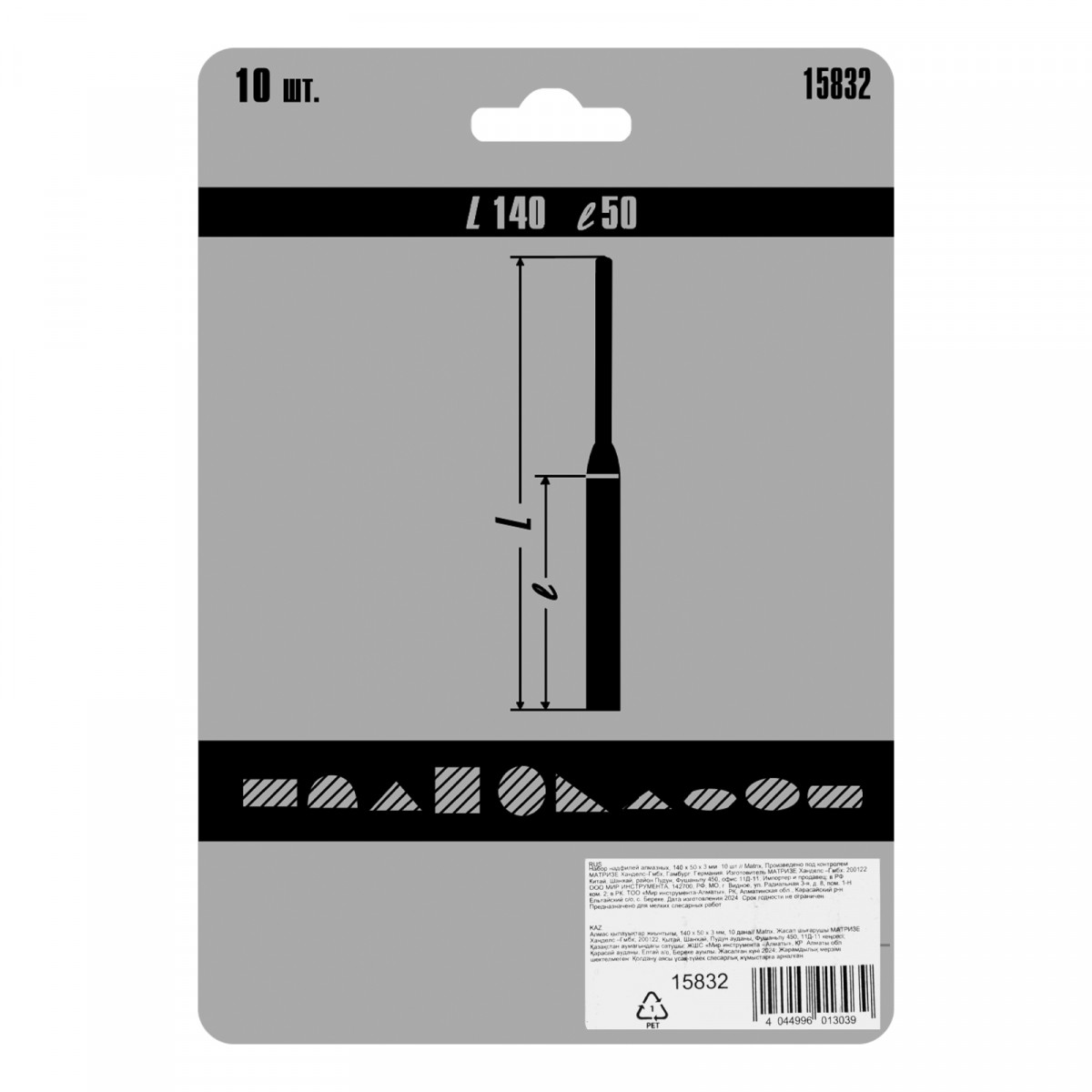 Набор надфилей алмазных, 140 х 50 х 3 мм, 10 шт Matrix
