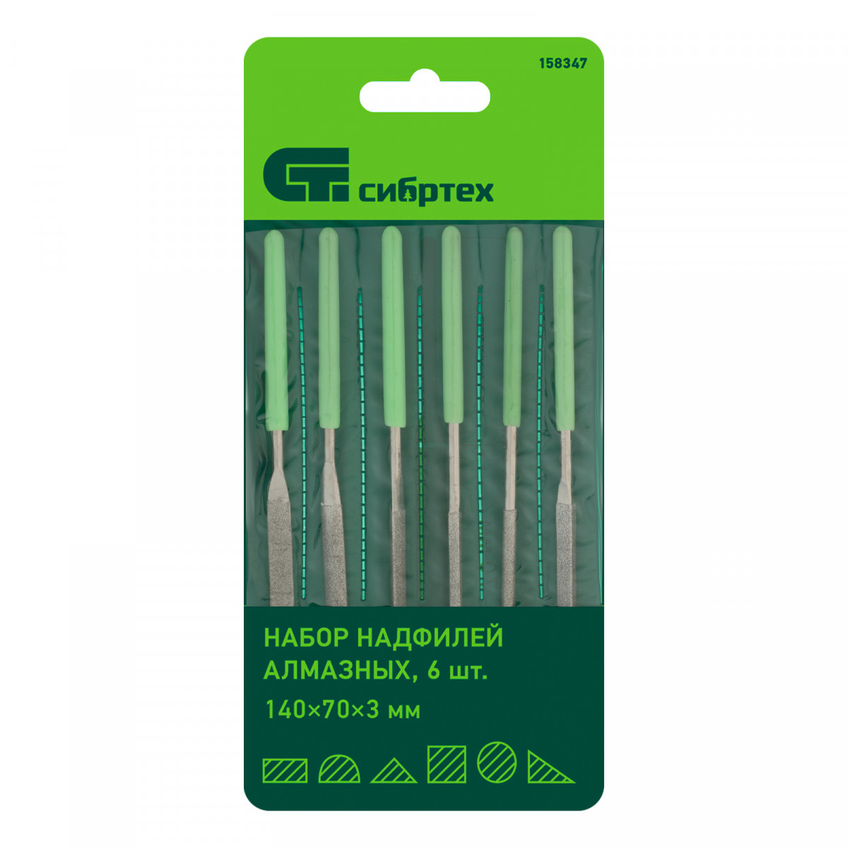 Набор надфилей алмазных, 140 х 70 х 3 мм, 6 шт Сибртех