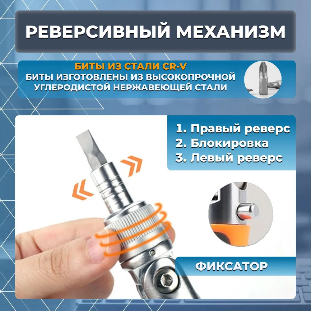 Набор отвертка реверсивная универсальная для ремонта дома и авто 68в1
