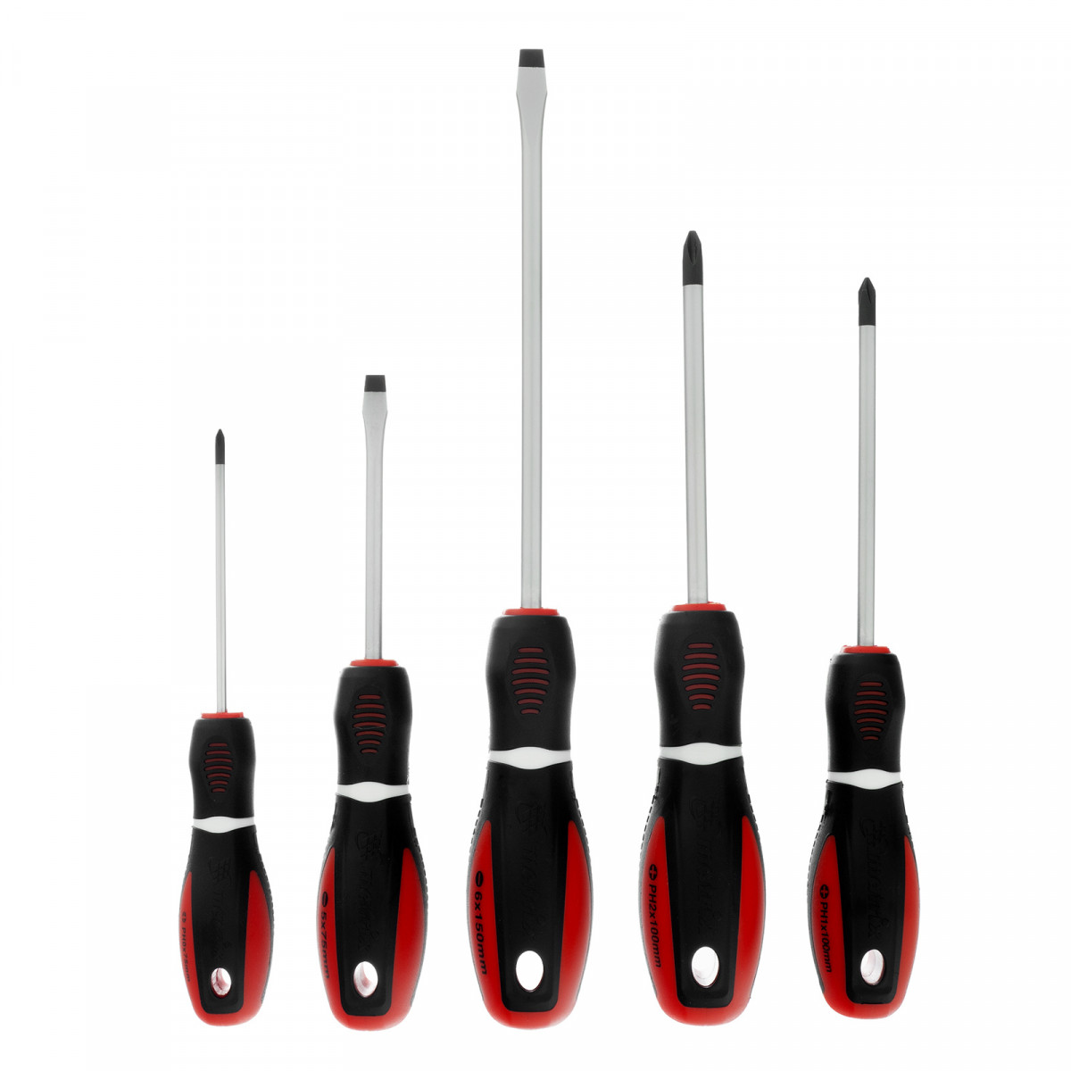 Набор отверток Matrix «Era» 13379 с трехкомпонентными рукоятками, из стали CrV, состоит из 5 инструментов и используется для работы с резьбовыми соединениями. Отвертки подходят для шлицев PH и SL. Благодаря намагниченным наконечникам не нужно придерживать крепеж рукой. Набор рекомендован для профессионального применения и пригодится во время сборки мебели, ремонта бытовой и оргтехники.