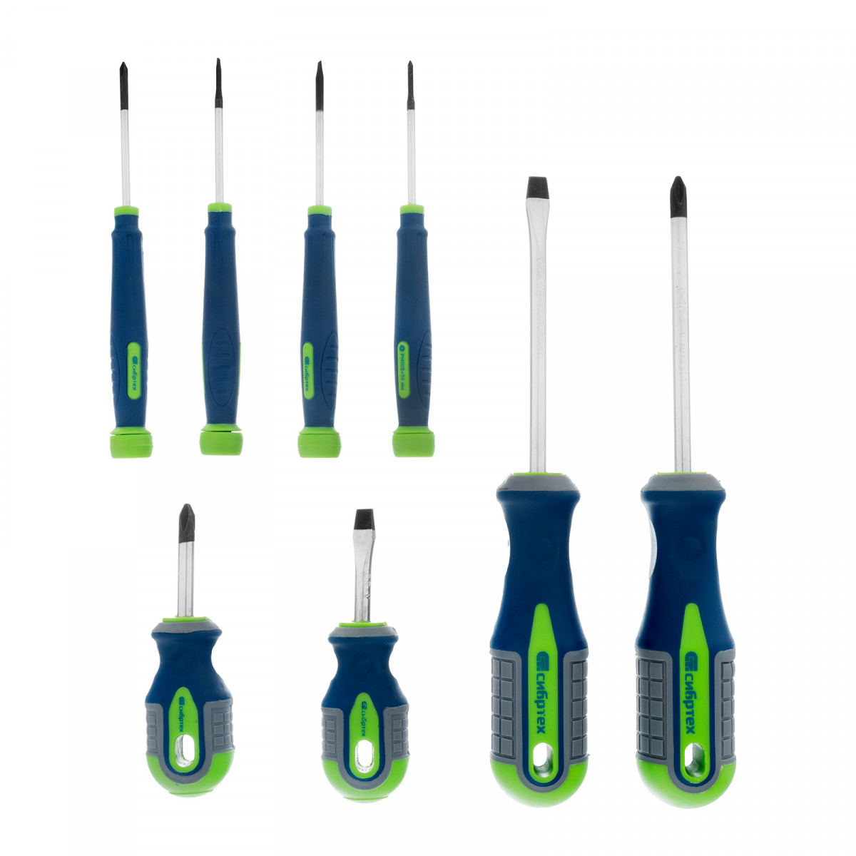 Набор отверток универсальный, CrV, трехкомпонентные рукоятки, 8 предметов Сибртех