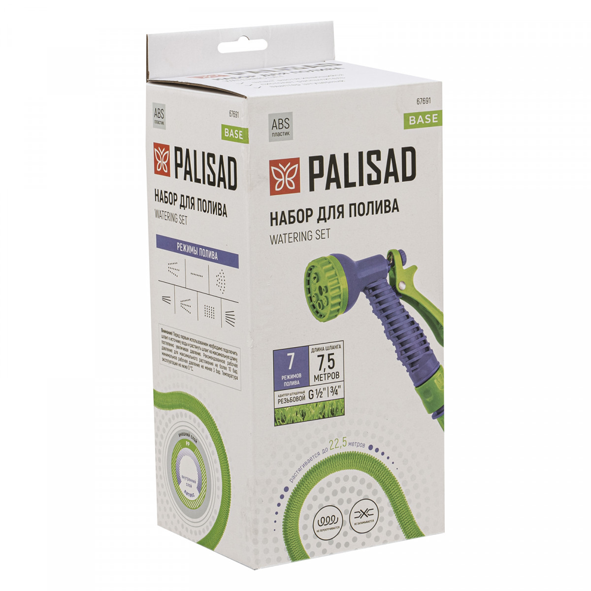 Набор поливочный, шланг 7,5-22,5 м, пистолет 7 реж., с быстросъемным соединителем Palisad