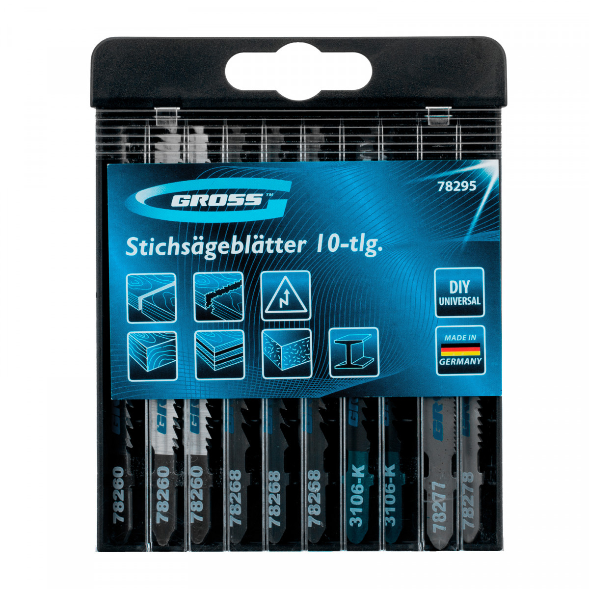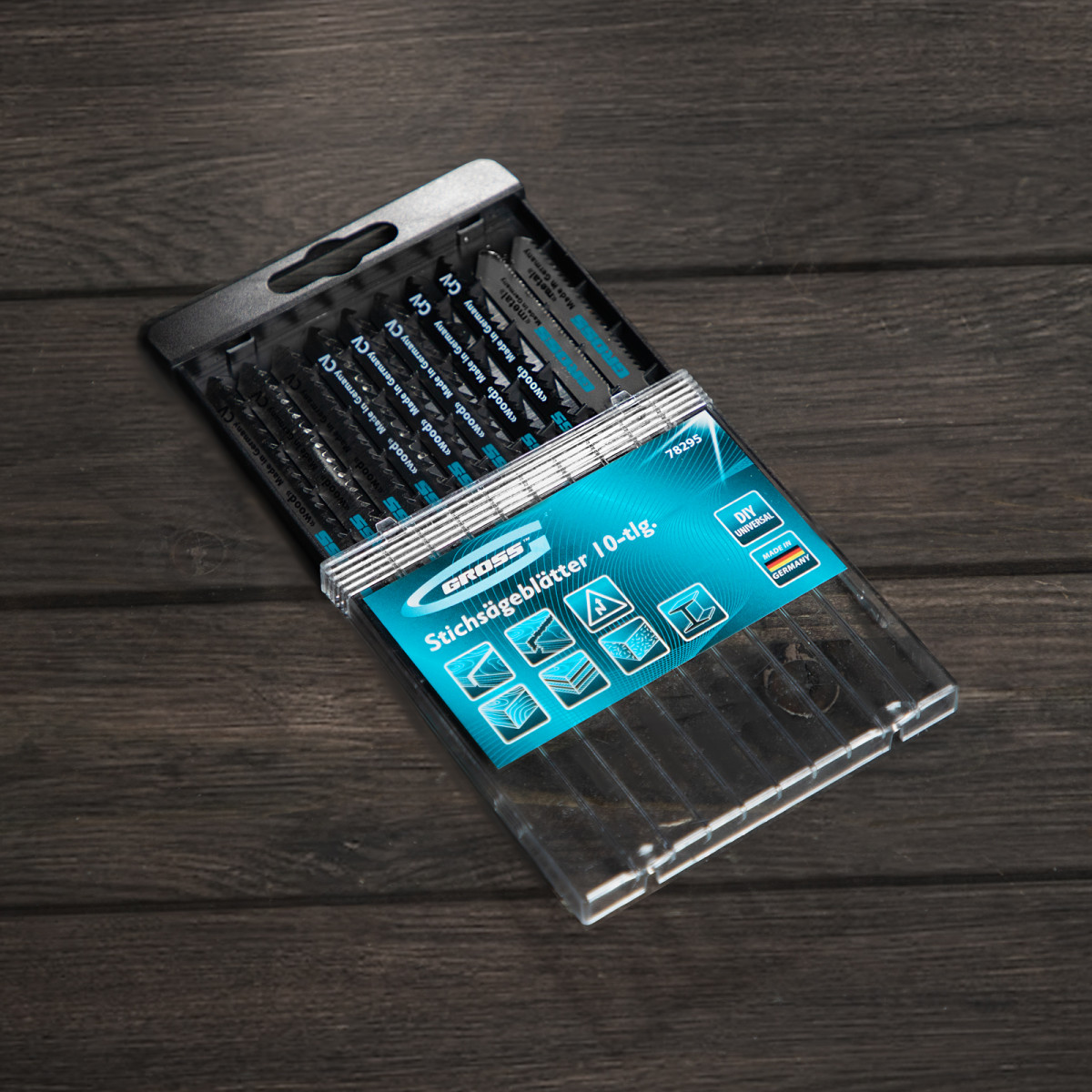 Универсальный набор полотен для электролобзика Gross DIY 78295, 10 шт. в в пластиковом кейсе, предназначен для чистого и быстрого прямолинейного распила деревянных и металлических материалов. Каждое полотно отличается высоким качеством, поэтому набор прослужит долгое время даже в условиях интенсивной эксплуатации.