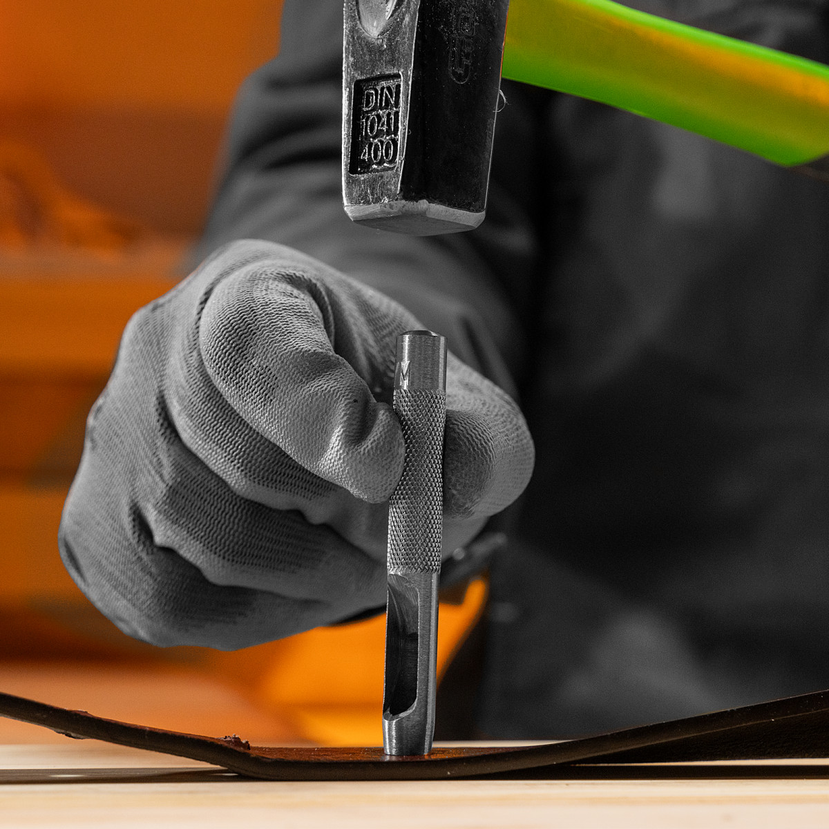 - Все пробойники в комплекте имеют рельефную рукоятку для надежного захвата и комфортной работы.