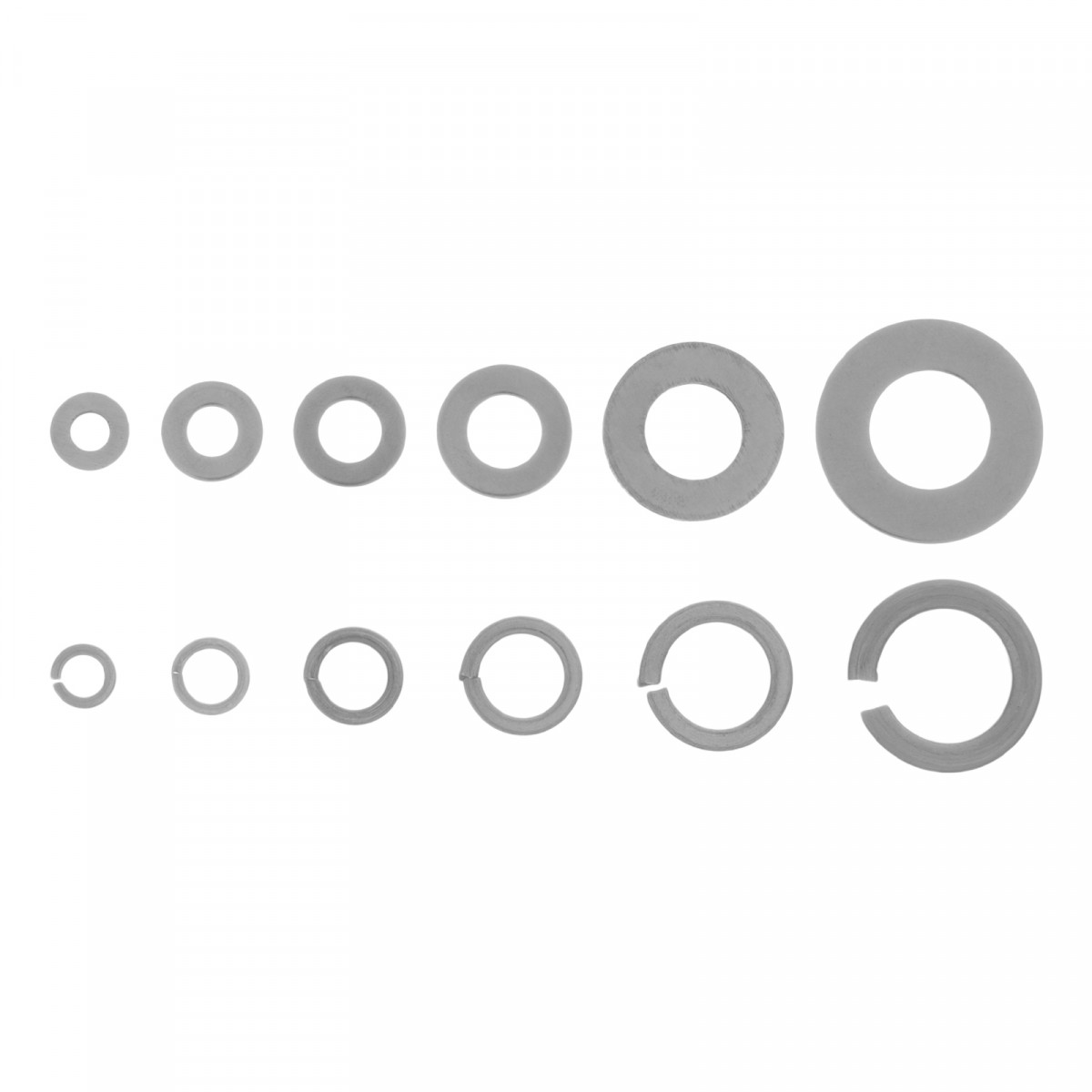 Пластиковый кейс - 1 штШайбы плоские: 3 мм - 50 шт4 мм - 40 шт5 мм - 30 шт6 мм - 25 шт8 мм - 15 шт10 мм - 15 штШайбы гроверы: 3 мм - 50 шт4 мм - 40 шт5 мм - 30 шт6 мм - 25 шт8 мм - 15 шт10 мм - 15 шт