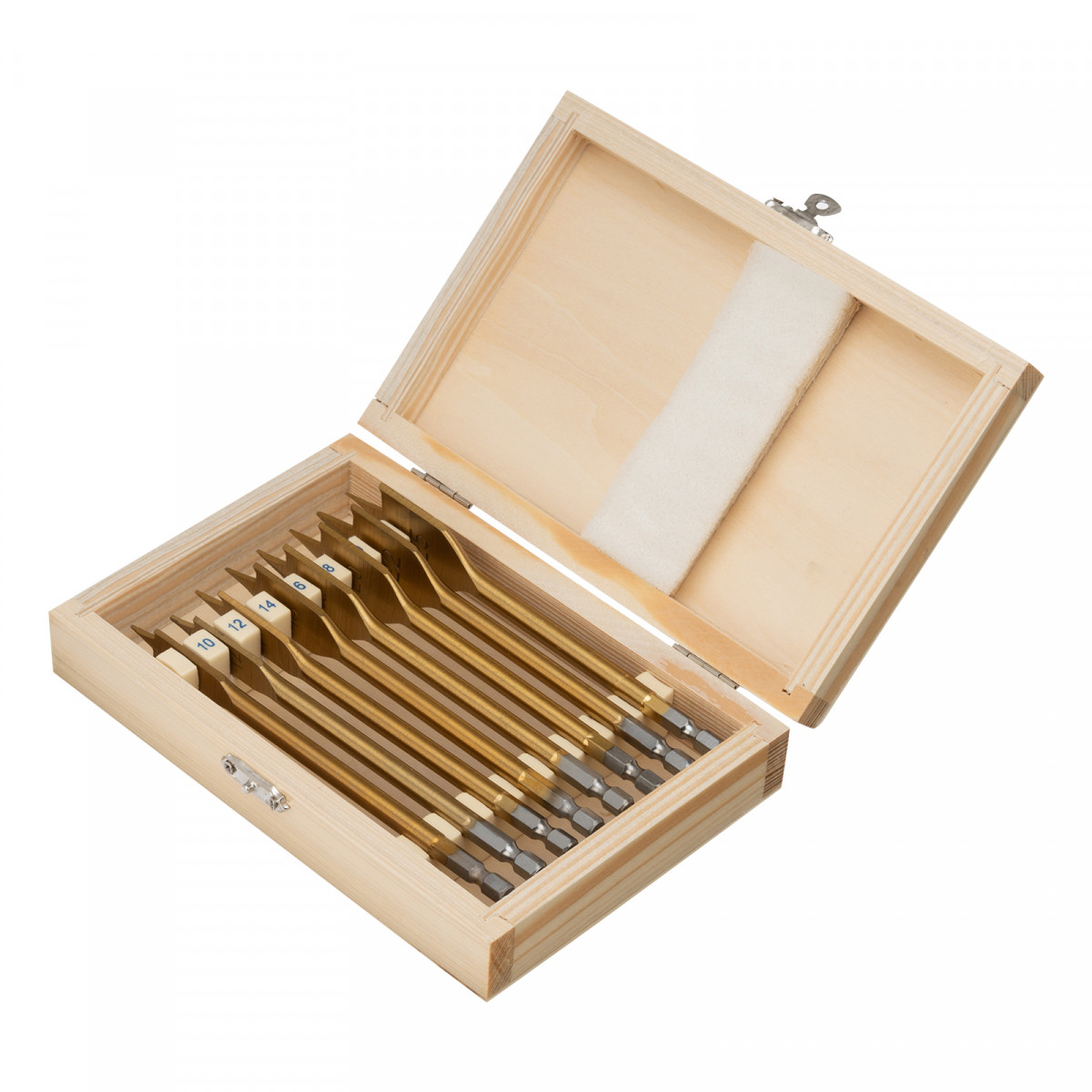 Набор сверл перовых по дереву, 10-12-14-16-18-20-22-25 мм, 8 шт, деревянный кейс Matrix