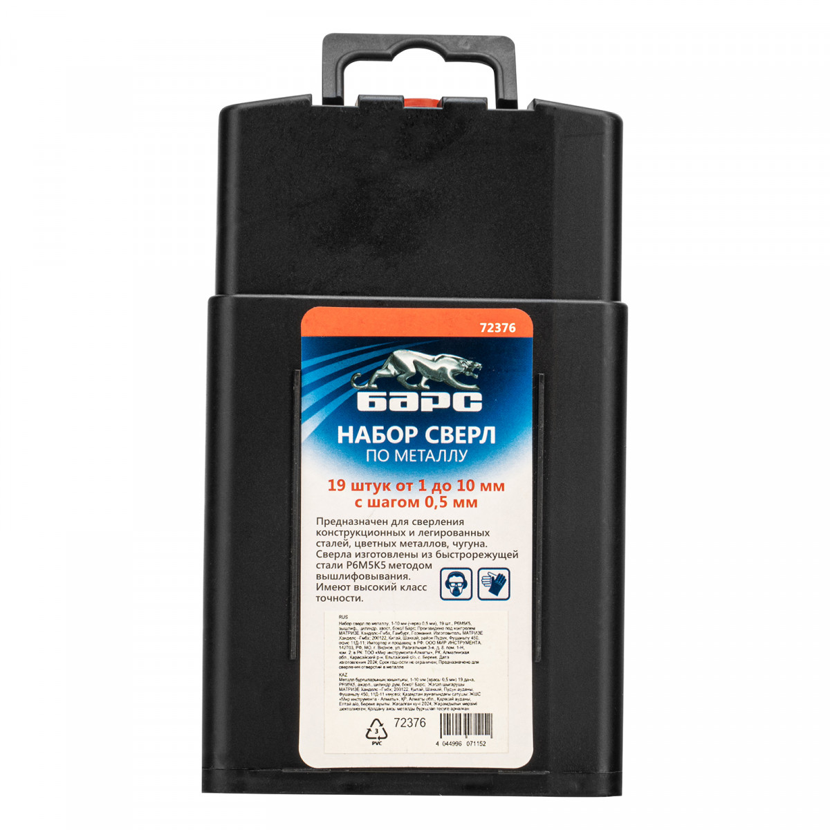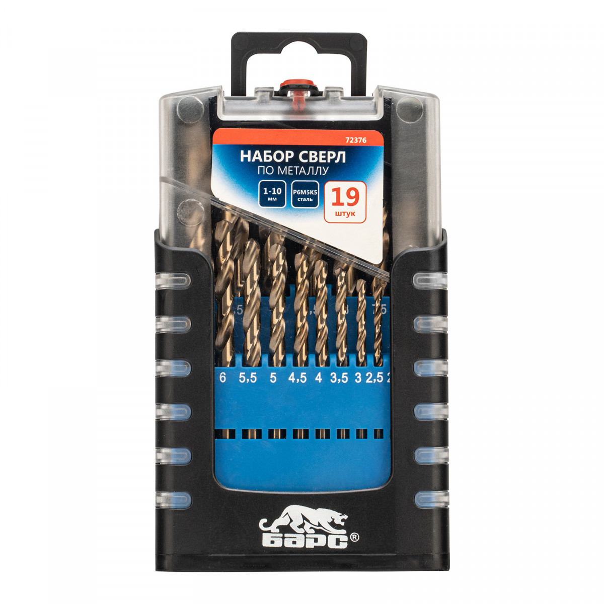 Набор сверл по металлу, 1-10 мм (через 0.5 мм) 19 шт, Р6М5К5, вышлиф, цилиндрический хвостовик Барс