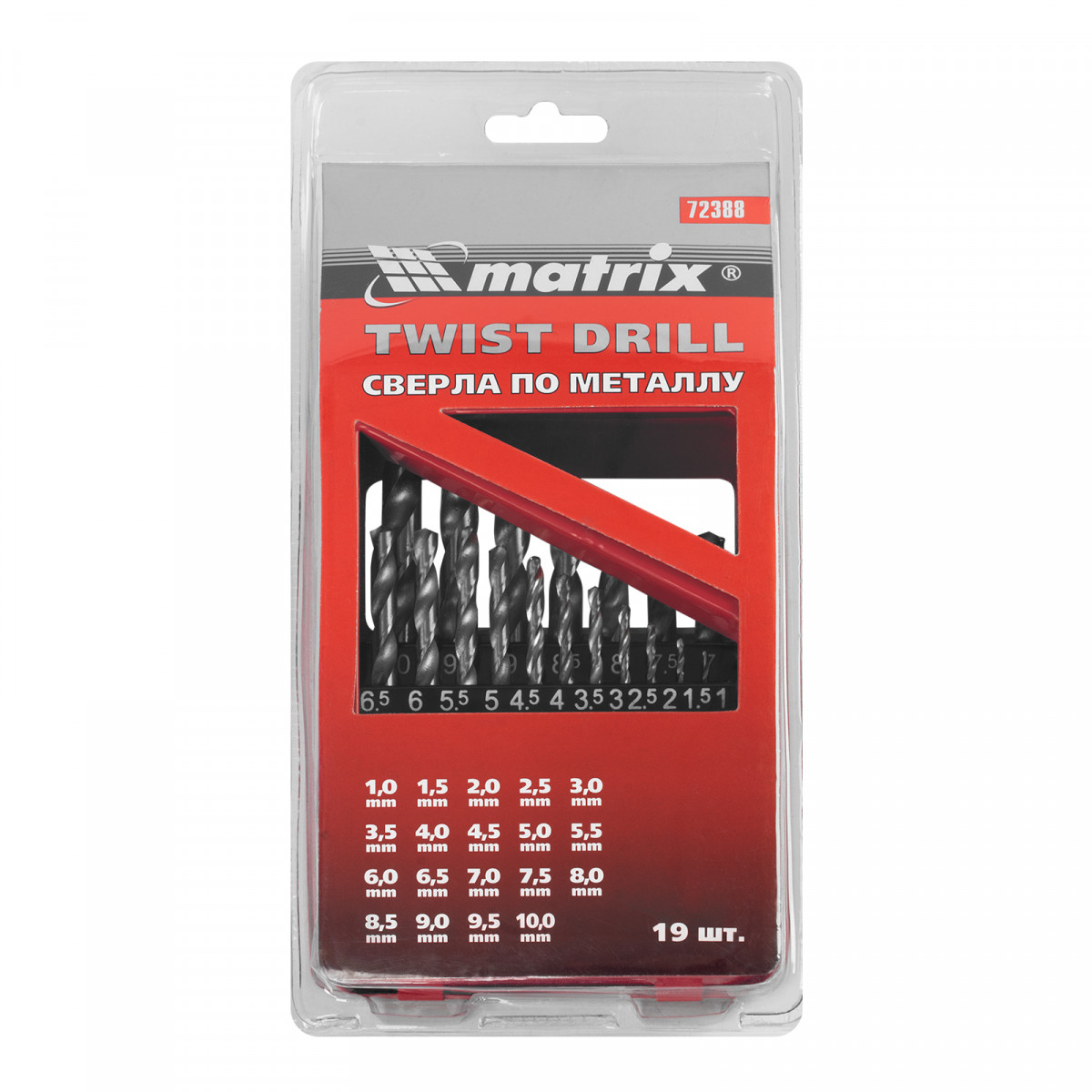 Набор сверл по металлу Matrix 72388, 19 шт. из стали HSS, с цилиндрическим хвостовиком, диаметром 1-10 мм (через 0,5 мм), в металлической коробке, используется для получения отверстий в металле и жестком пластике. Сверла выдерживают высокие нагрузки и подходят для интенсивного использования.