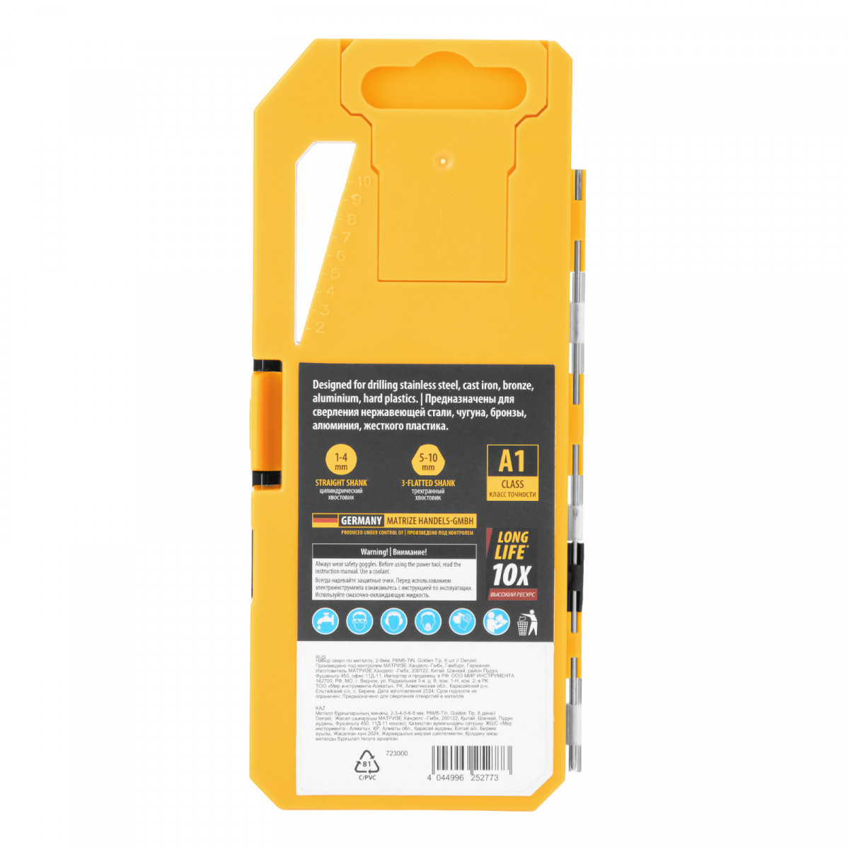 - Удобная упаковка — сверла поставляются в пластиковом кейсе с шаблоном для определения диаметра сверл.