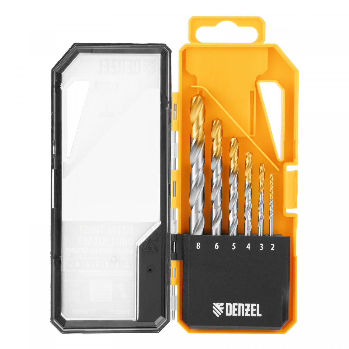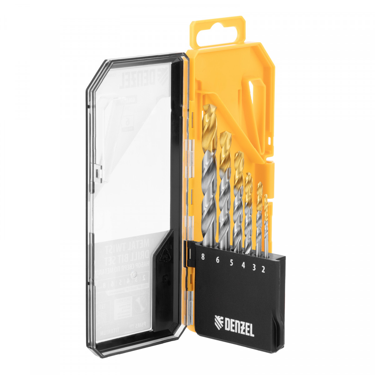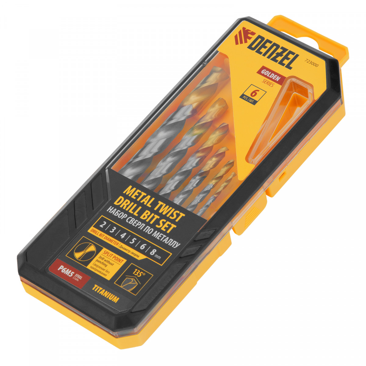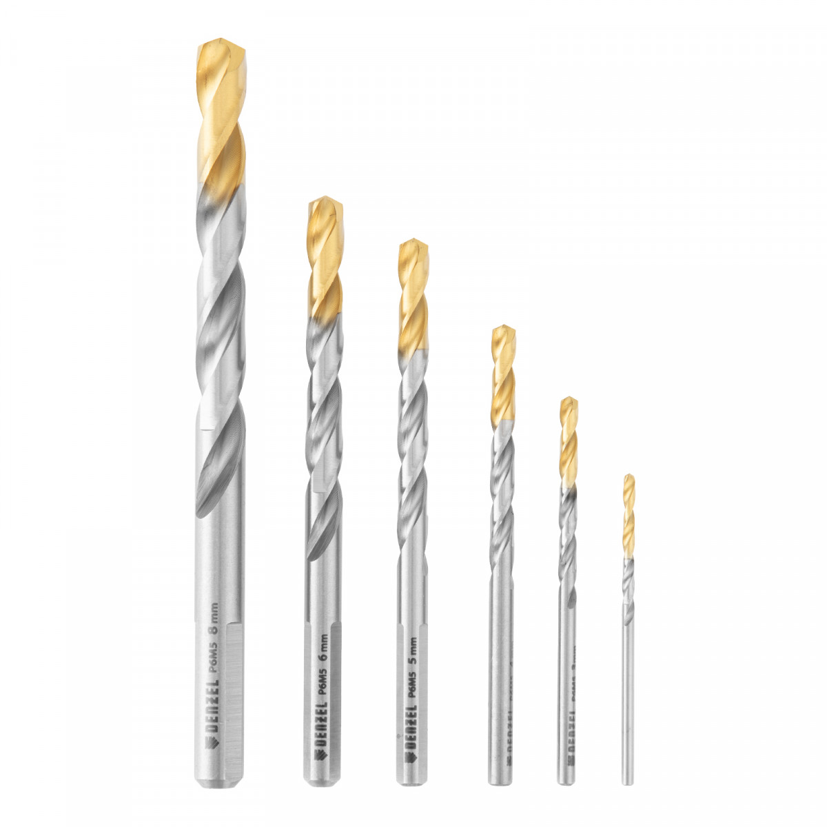 Набор сверл по металлу, 2-8мм, Р6М5-TiN, Golden Tip, 6 шт Denzel