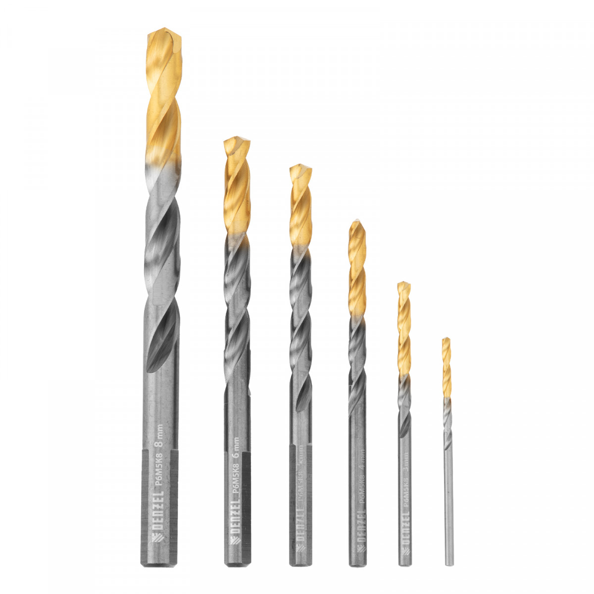 Набор сверл по металлу, 2-8мм, Р6М5К8-TiN, Golden Tip, 6 шт Denzel