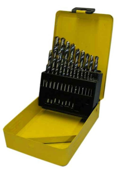 Комплектация включает 23 сверла различных типоразмеров по металлу.