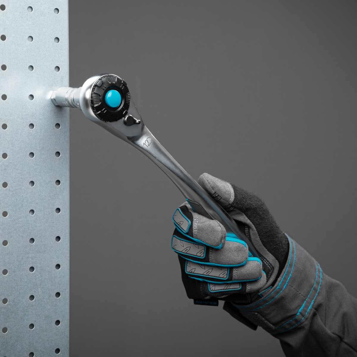 • Удобная работа в труднодоступных местах — цельнокованая трещотка со 120 зубьями позволяет вращать крепеж максимально плавно и мягко.