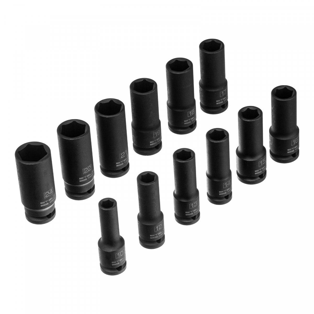 Набор ударных глубоких шестигранных торцевых головок, 1/2", 10-24 мм, в кейсе 12 шт. Stels