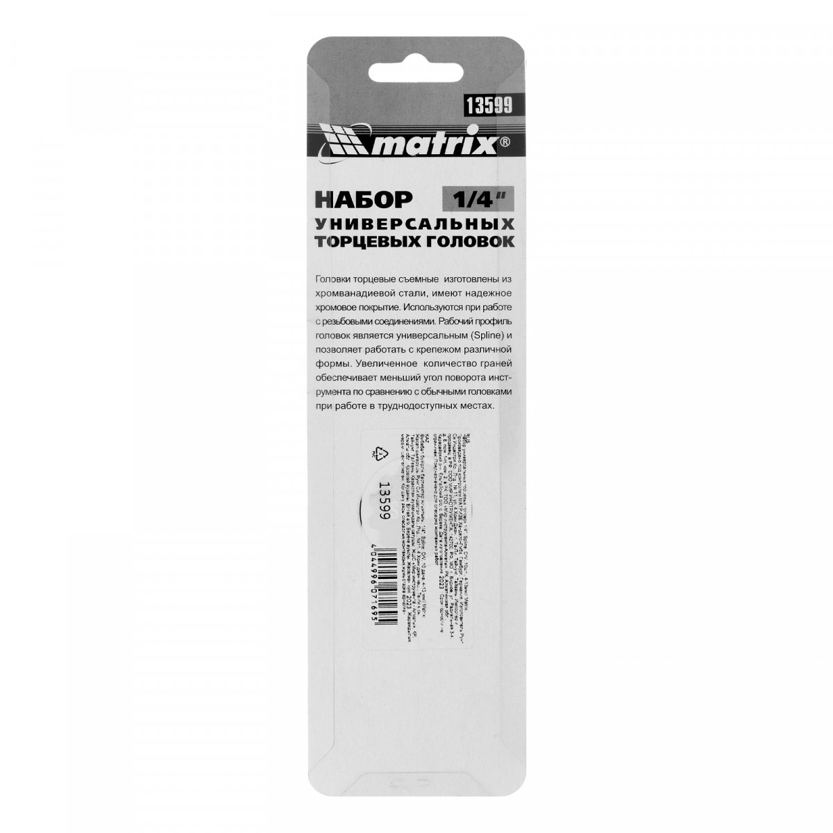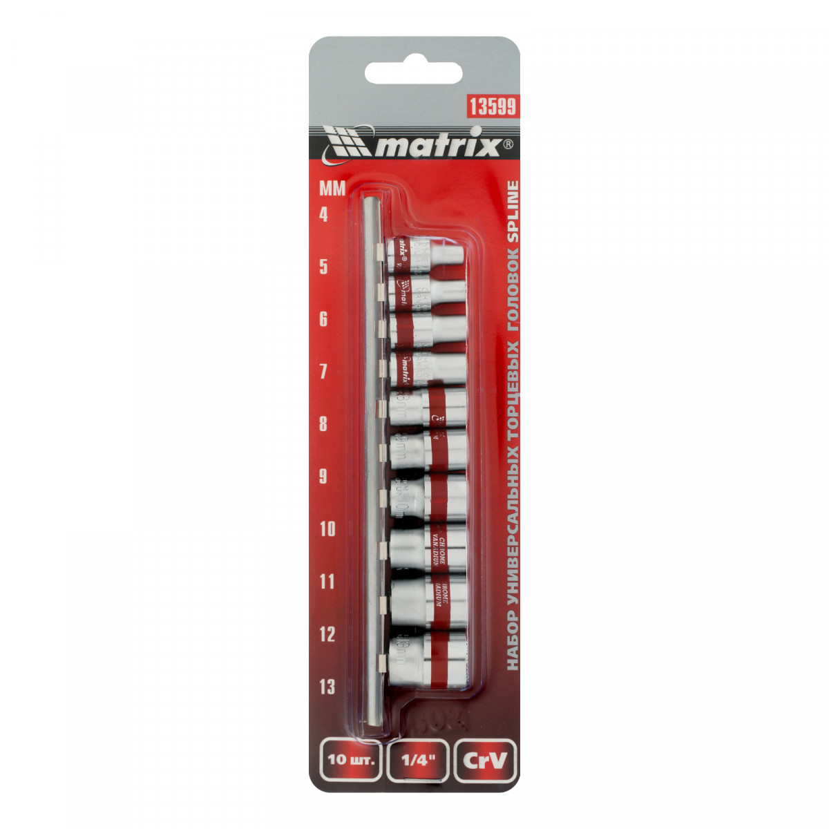 Набор универсальных торцевых головок 1/4", Spline, CrV, 4-13мм, 10 штук Matrix