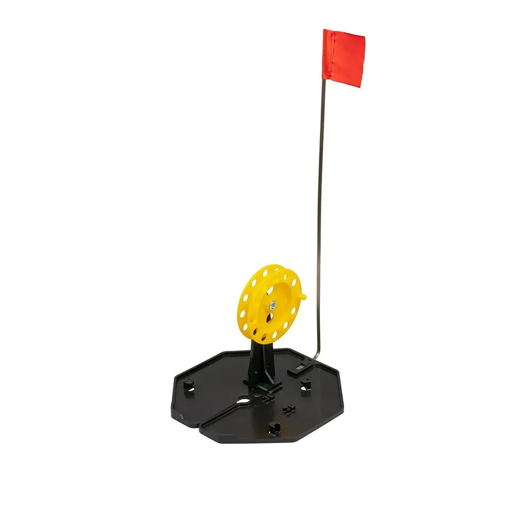 Набор жерлиц на подставке Тонар ЖЗ-03 d-210 мм, катушка d-85 мм, 10 шт 00000136346 используется для подледной ловли рыбы.