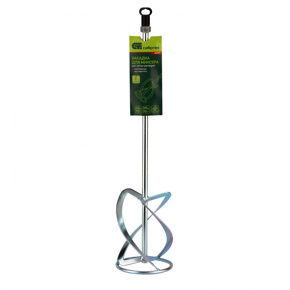 Насадка для миксера, для легких растворов, 140 х 590 мм, оцинкованная, хвостовик резьба М14 Сибртех