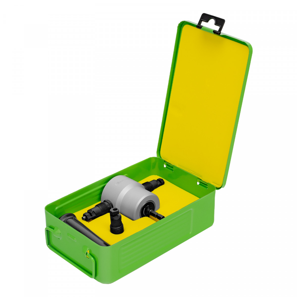- Простое хранение и транспортировка — насадка поставляется в металлическом кейсе.