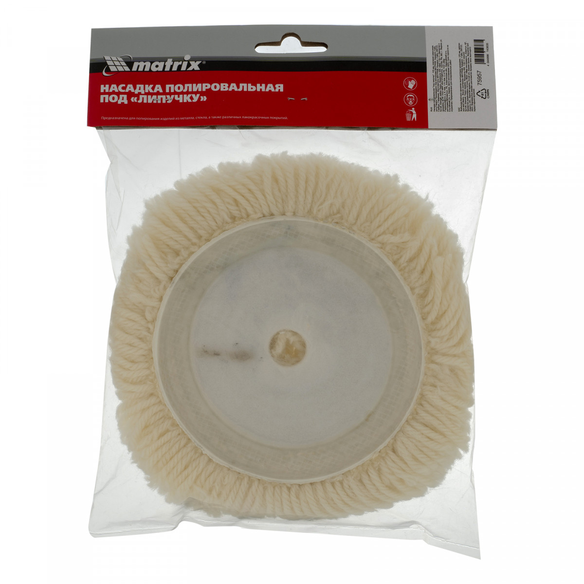 Полировальная насадка «под липучку» Matrix 75957 диаметром 125 мм, с рабочей поверхностью из плетеной шерстяной нити, применяется совместно со шлифовальными машинками, а также дрелями и УШМ с установленной опорной тарелкой «под липучку» соответствующего типоразмера. Ворс высотой 30 мм обладает хорошей полирующей способностью, эффективно устраняет микротрещины и придает блеск. Насадку используют для полировки металлических и стеклянных поверхностей, а также лакокрасочных покрытий, преимущественно во время проведения кузовных работ.