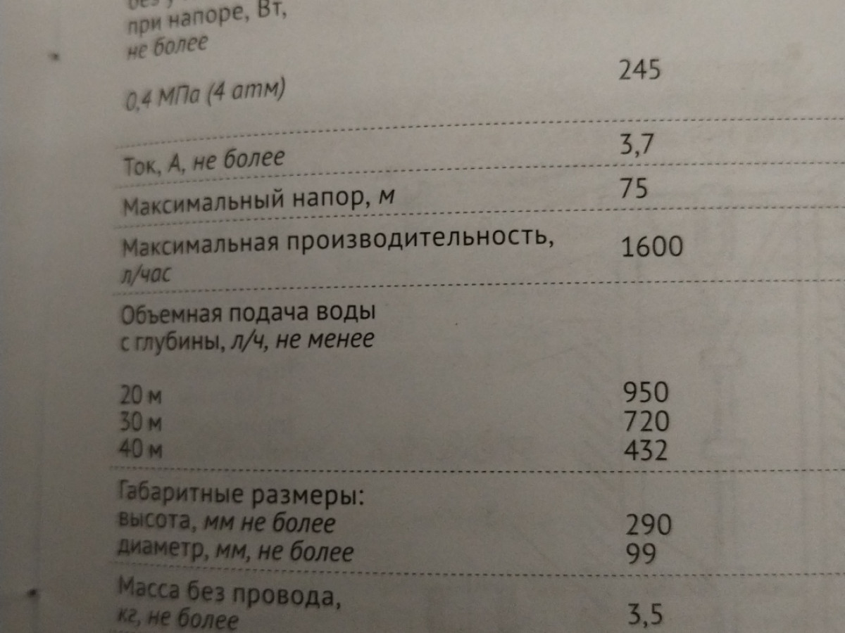 Насос не соответствует характеристики точнее характеристики ценнике указанного выдаёт он почти в 2 раза меньше не 1600л/ч а 950 и это до 20 м а свыше еще меньше наверно как указанно в паспорте есть дешевле насосы с той жпроизводительностью