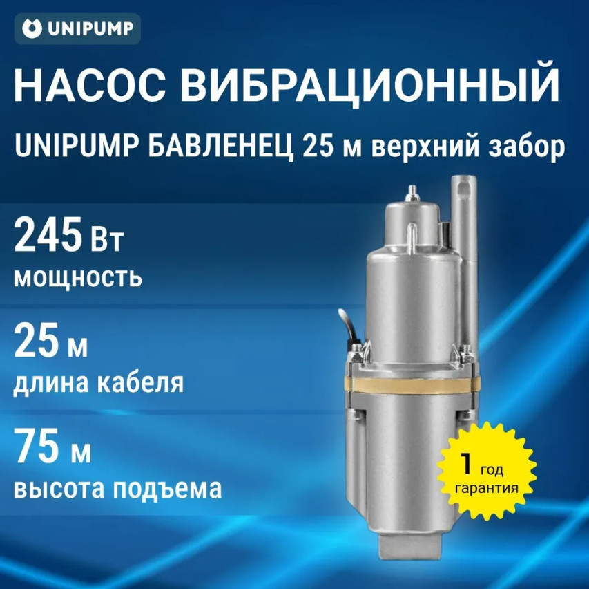 Насос вибрационный Бавленец-М, 25м верхний забор UnipumpВибрационный насос UNIPUMP Бавленец-М верхний забор подходит для подачи питьевой воды. Предназначен для автономного водоснабжения частных домов, небольших фермерских хозяйств.