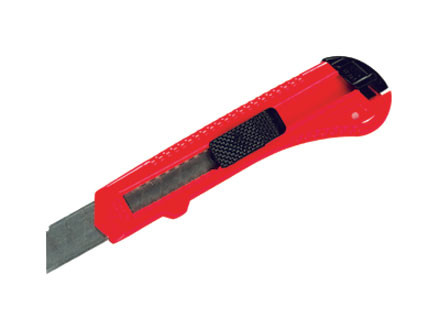 Нож имеет пластмассовый корпус, кнопку выдвижения и фиксации лезвия. Замена лезвия осуществляется вручную через хвостовую часть ножа. Предназначен для разрезания бумаги, картона и прочих материалов, при котором не требуется большого усилия.