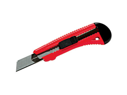 Нож имеет пластмассовый корпус с металлической направляющей, кнопку выдвижения и фиксации лезвия. Замена лезвия осуществляется вручную через хвостовую часть ножа. Предназначен для разрезания бумаги, картона и прочих материалов.