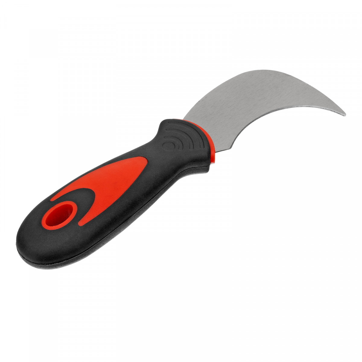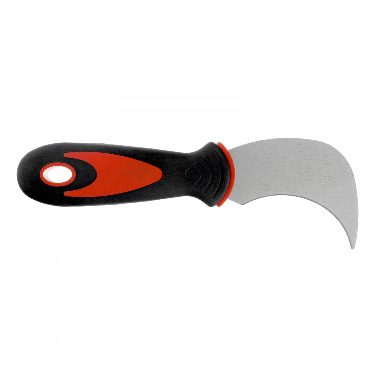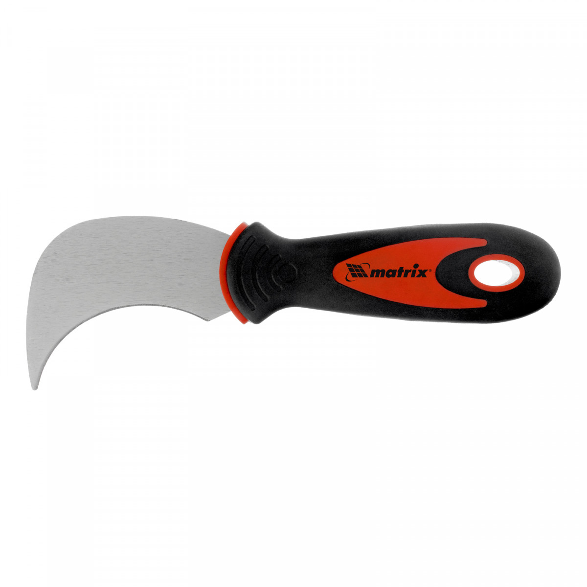 Нож Matrix 78989 длиной 180 мм, с двухкомпонентной рукояткой, применяется для разрезания мягких напольных покрытий. Острое лезвие длиной 70 мм легко справляется с линолеумом, ковролином и другими материалами. Изогнутая форма полотна предотвращает повреждение рабочей кромки, если резка происходит на твердой поверхности. Инструмент используется во время проведения отделочных работ.