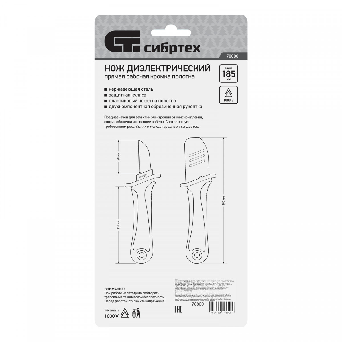 Диэлектрический нож до 1000 В с прямой рабочей кромкой полотна Сибртех 78800 будет полезен при проведении электромонтажных работ. С его помощью можно снять изоляцию с кабеля и зачистить электрожилы. За счет прямого лезвия он легко снимает даже толстую оболочку. Использовать нож необходимо с соблюдением всех требований технической безопасности, перед выполнением работ требуется отключить напряжение.