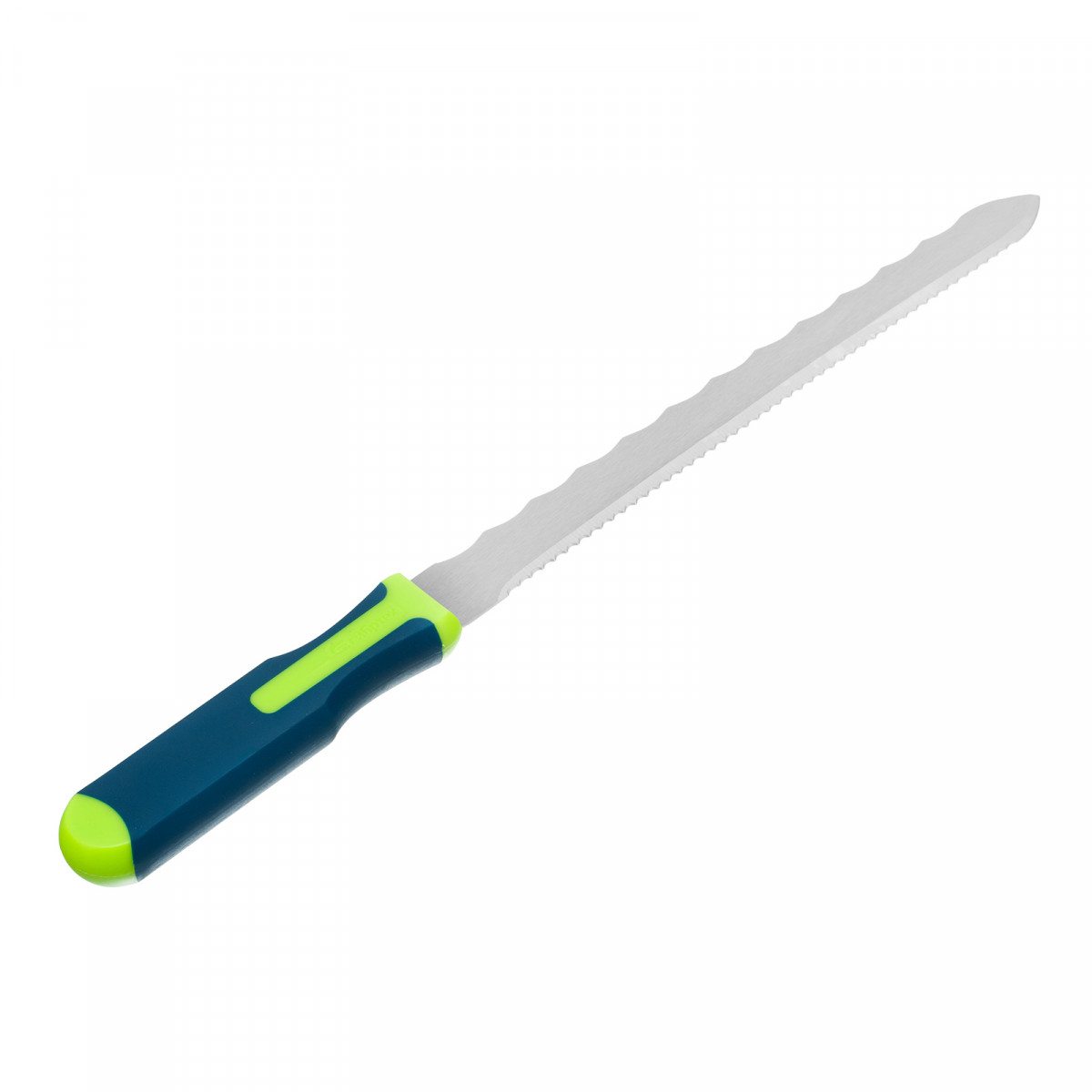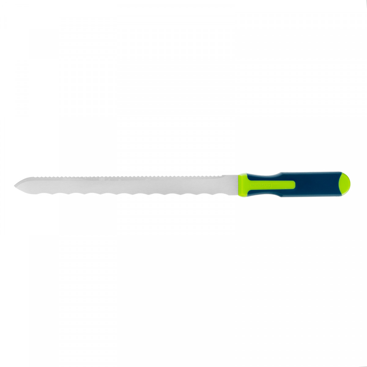 Нож Сибртех 79027 общей длиной 420 мм, с обрезиненной рукояткой и 2-сторонним лезвием длиной 280 мм, используется для резки теплоизоляционных панелей. Полотно имеет две режущих кромки, что позволяет выбрать оптимальную сторону в зависимости от типа материала. А благодаря длине 280 мм лезвие легко справляется с подрезкой длинных и толстых панелей.