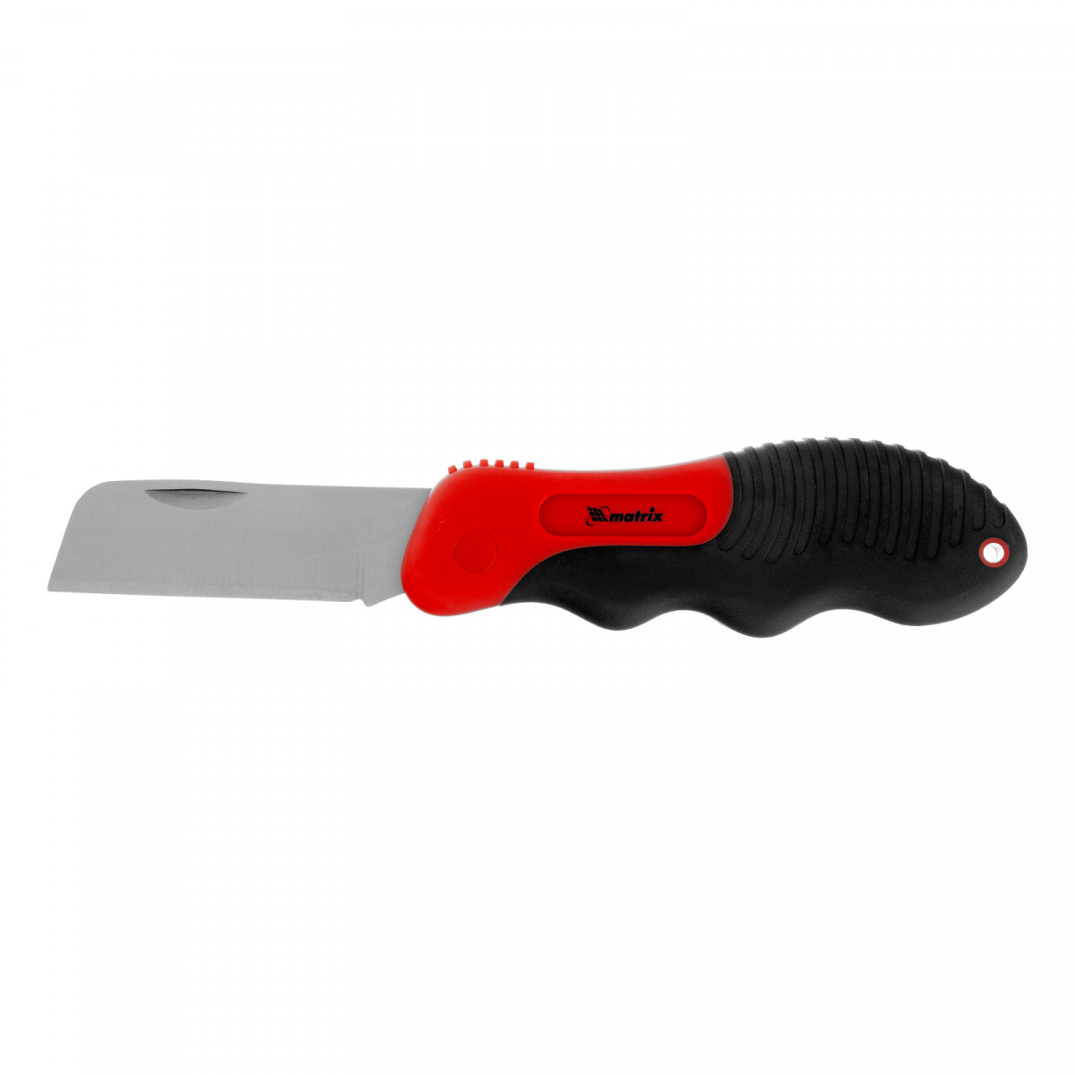 Нож электрика, складной, прямое лезвие, эргономичная двухкомпонентная рукоятка Matrix