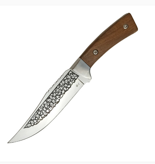 Нож “Ф-1” от Кизляр не только поможет вам в походе или на охоте, но и станет прекрасным подарком для тех, кто предпочитает активный отдых на свежем воздухе. Таким его делает уникальный дизайн в виде изящной гравировке на клинке. Сам нож “Ф-1” продается вместе с ножнами из натуральной кожи с тиснением, что добавляет ему привлекательности и делает возможной его комфортную транспортировку и хранение. Материал клинка: Нержавеющая сталь AUS-8. Твердость клинка (HRC): 57-58. Толщина обуха клинка (мм): 2.4. Длина клинка (мм): 145. Длина рукояти (мм): 120. Материал рукояти: Дерево. Тип режущей кромки: Гладкая. Тип обработки клинка: Полировка. Тип заточки: Вогнутая.