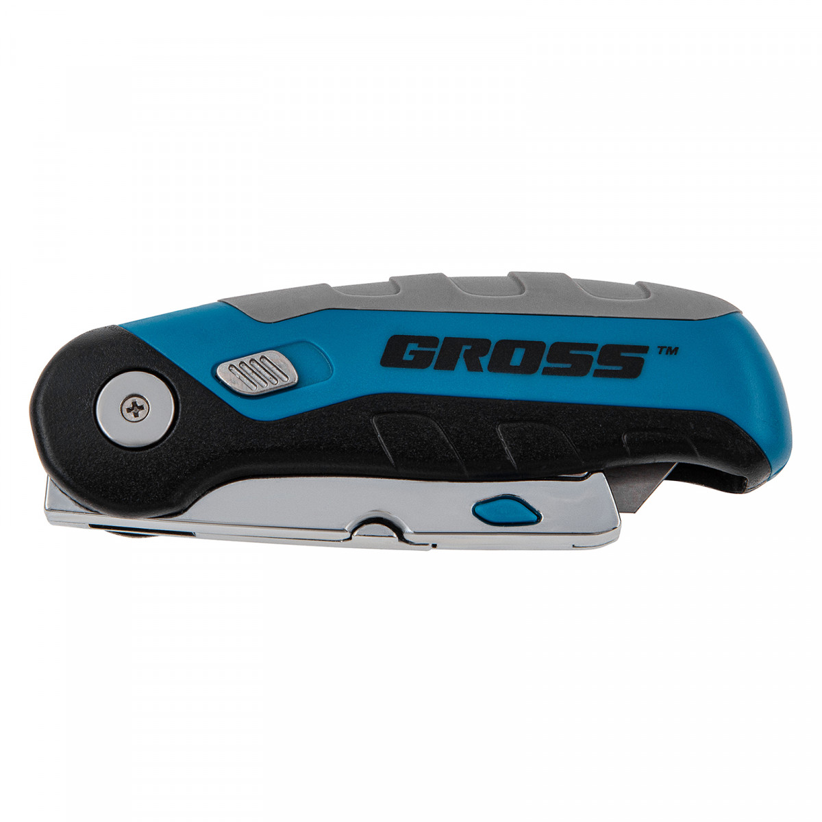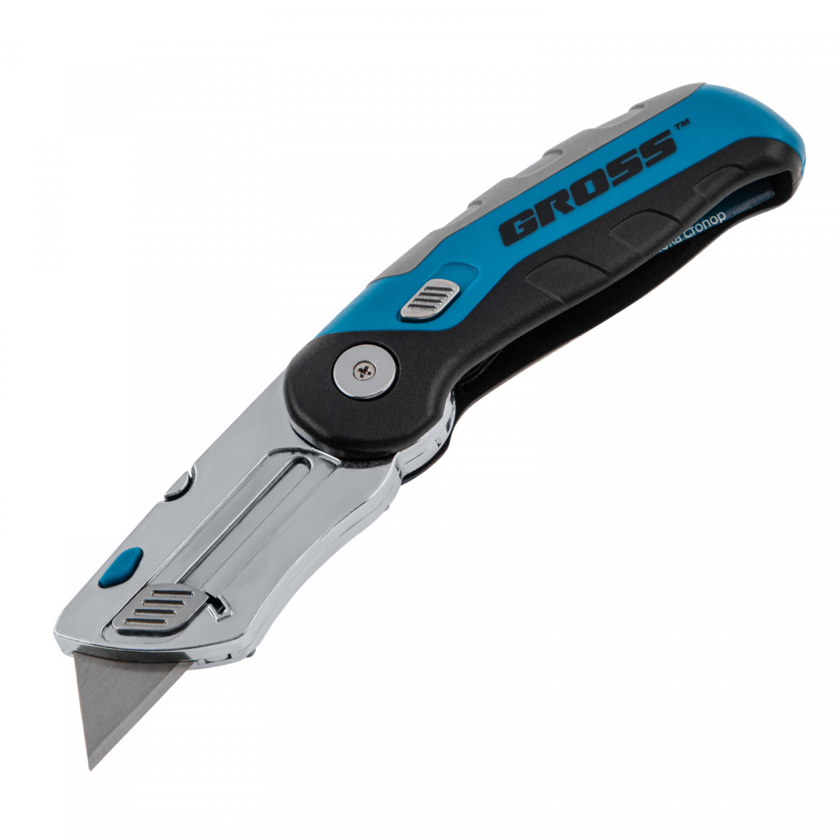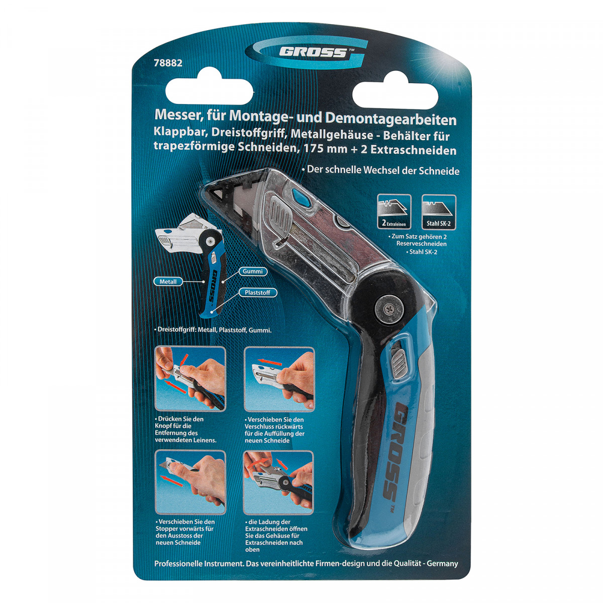 Нож ремонтно-монтажныйный, складной, трехкомпонентная рукоятка, контейнер-держатель для лезвий, 175 мм, 2 запасных лезвия Gross