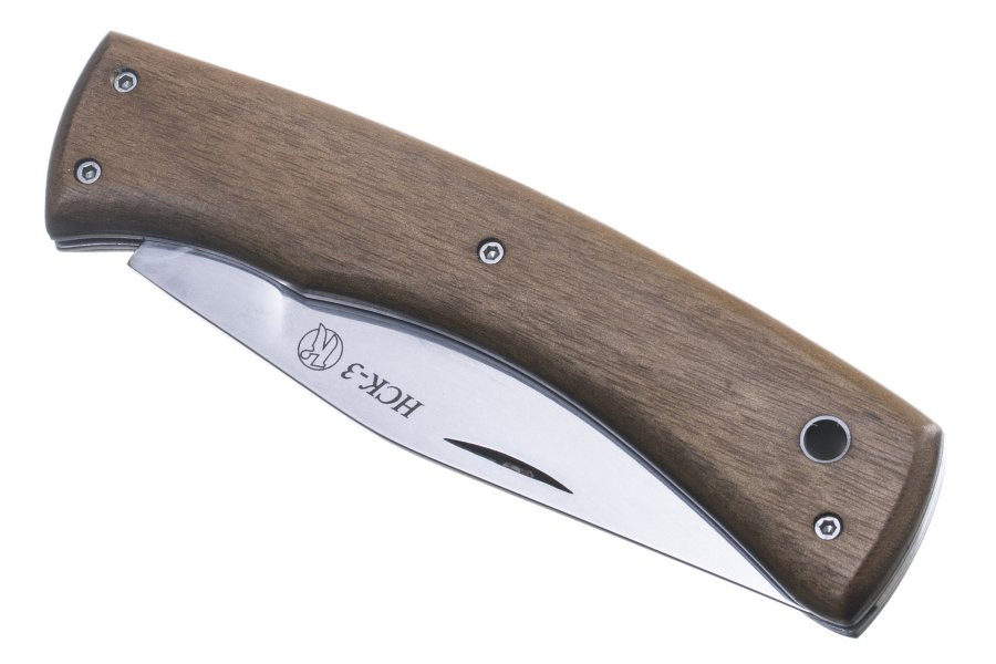 Нож Кизляр складной НСК-3 - с блестящим полированным клинком, винты на рукоятке из нержавеющей стали.