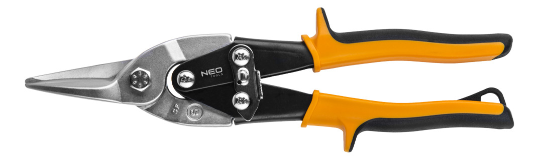 Ножницы по металлу NEO. Корпус изготовлен из высококачественной хромомолибденовой стали. Лезвия с индукционной закалкой, что обеспечивает долгий срок службы. Конструкция не позволяет материалу выскальзывать из рук во время работы. Благодаря антискользящим накладкам на рукоятках, инструмент хорошо ложится в ладонь и не выскальзывает. Острые кромки губок легко и плавно режут листовой металл. Гарантией качества является сертификат TÜV Rheinland, а также исполнение инструмента в соответствии с немецким стандартом DIN 6438. Бренд NEO оправдывает ожидания профессионалов.