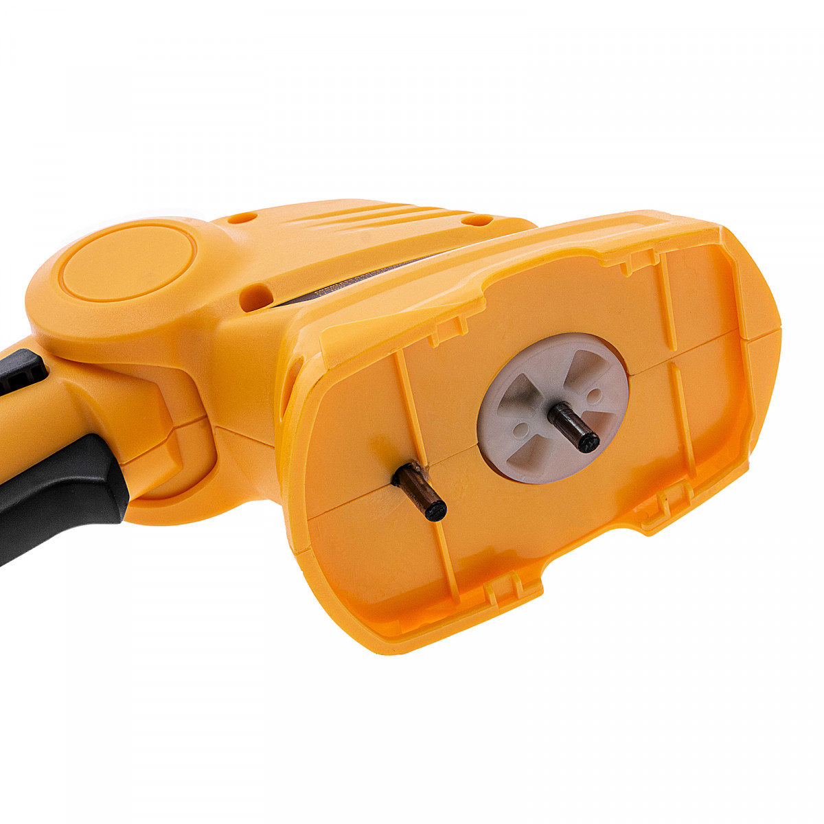 - Долговечность — медная обмотка двигателя устойчива к перегреву и обеспечивает стабильную работу ножниц-кустореза даже при высоких нагрузках.
