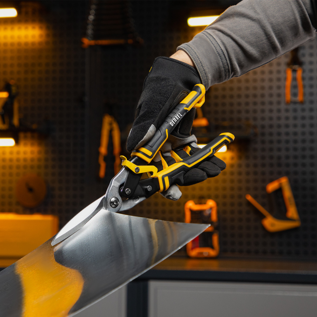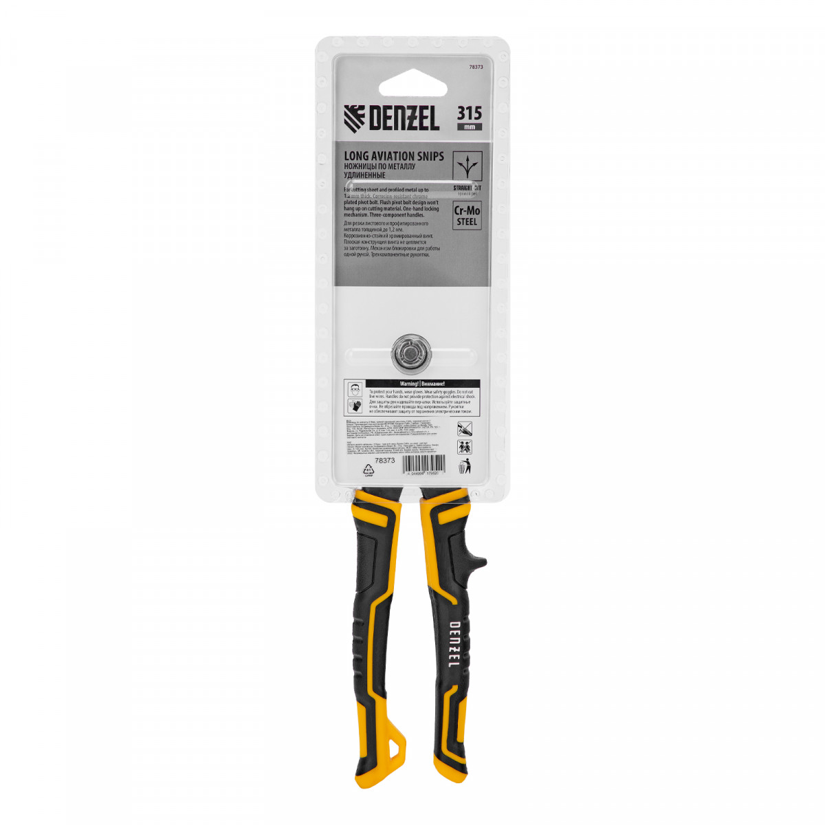 Ножницы по металлу, 315 мм, прямой проходной рез, сталь-CrMo, трехкомпонентные рукоятки Denzel
