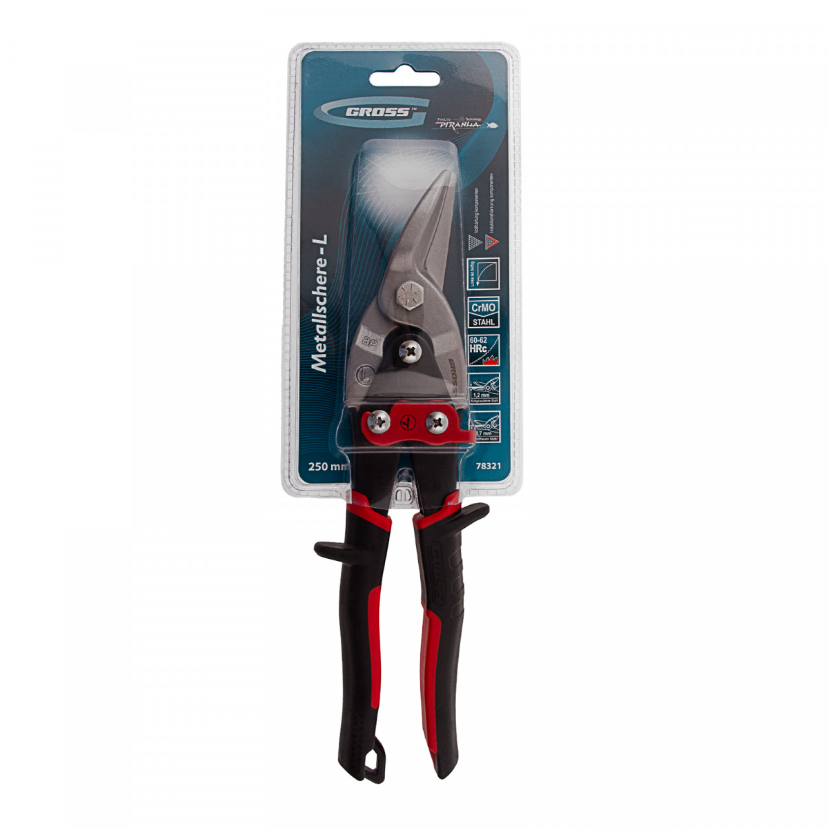 Ножницы по металлу "Piranha", 250 мм, прямой и левый рез, сталь СrMo, двухкомпонентные рукоятки Gross