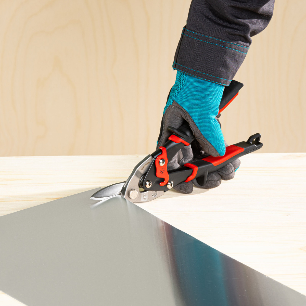 Ножницы по металлу Gross PIRANHA 78321 длиной 250 мм, из стали CrMo, с двухкомпонентными рукоятками, предназначены для прямого и левого реза по листовым заготовкам. Изогнутая рабочая часть облегчает выполнение длинных точных разрезов. Двойной рычажный механизм уменьшает нагрузку на руку при резке толстого металла. Ножницы справляются с холоднокатаной сталью толщиной до 1,2 мм и с нержавеющей сталью толщиной до 0,7 мм. Инструмент используется для проведения профессиональных слесарных работ.