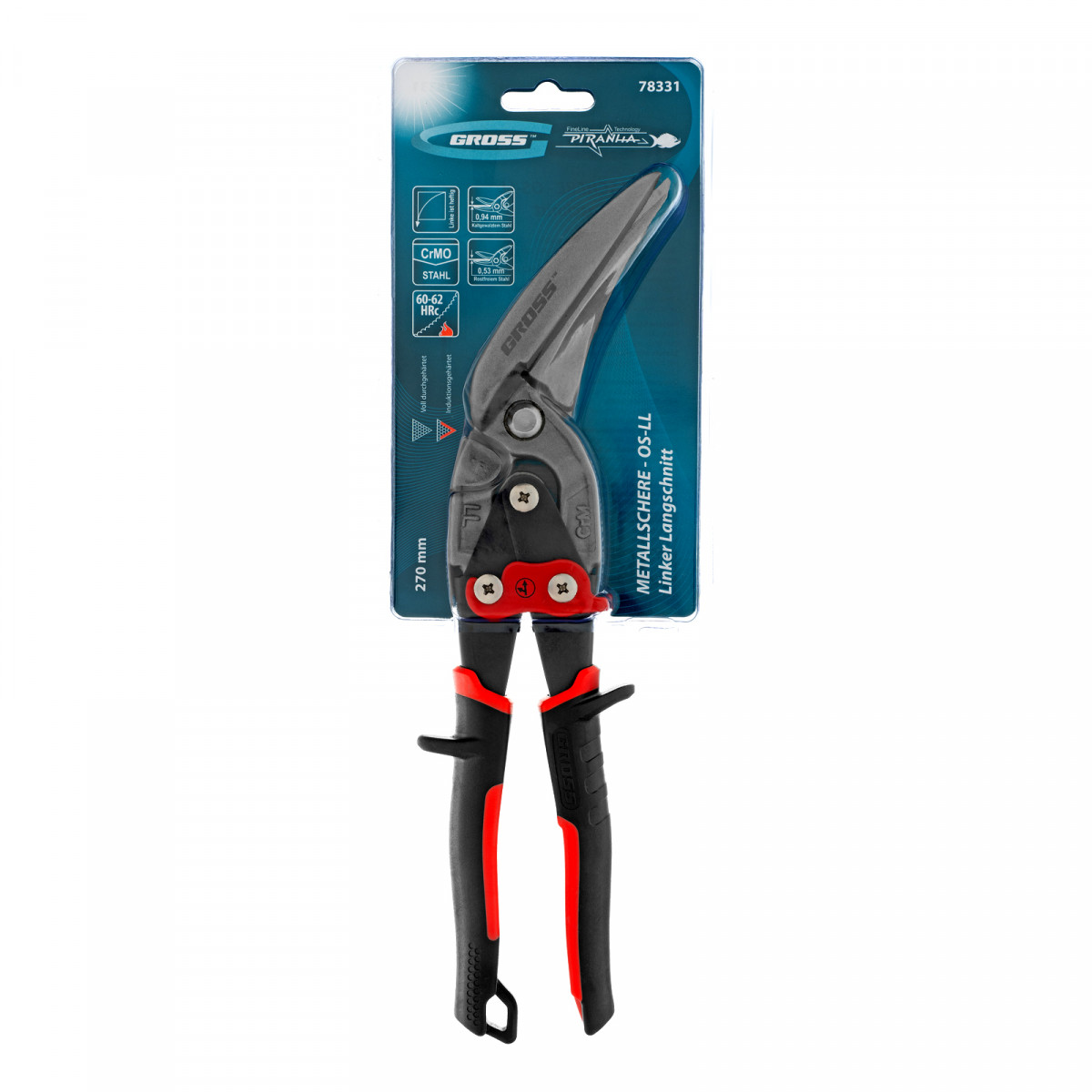 Ножницы по металлу "Piranha", 270 мм, прямой и левый проходной рез, сталь СrMo, двухкомпонентные рукоятки Gross
