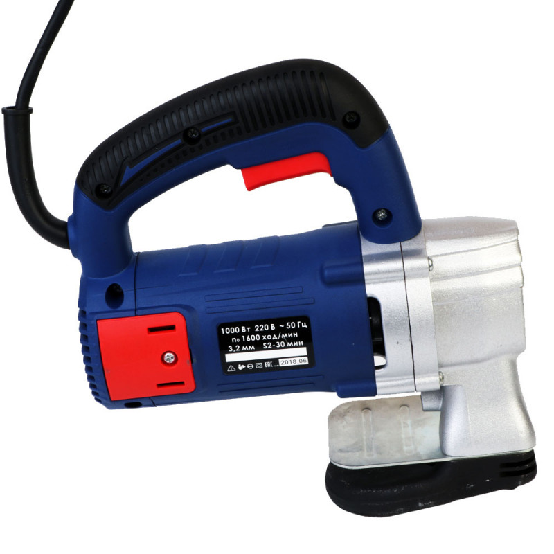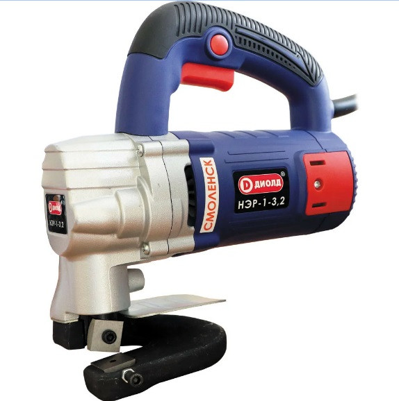Ручные электрические ножницы ДИОЛД НЭР-1-3.2 10141030 надежны и практичны в эксплуатации. Используются для простого и фигурного резания металла толщиной до 3.2 мм. Двигатель мощностью 1000 Вт обеспечивает высокую производительность. Для защиты оператора при работе предусмотрен специальный козырек.