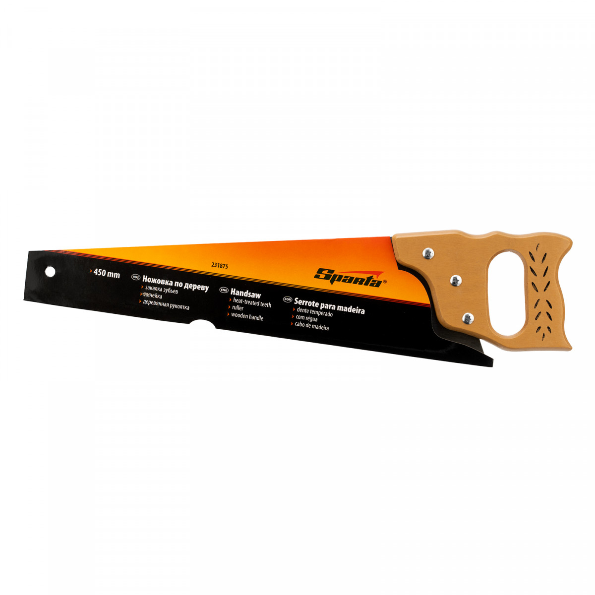 Ножовка по дереву, 450 мм, 7-8 TPI, каленый зуб, линейка, деревянная рукоятка Sparta