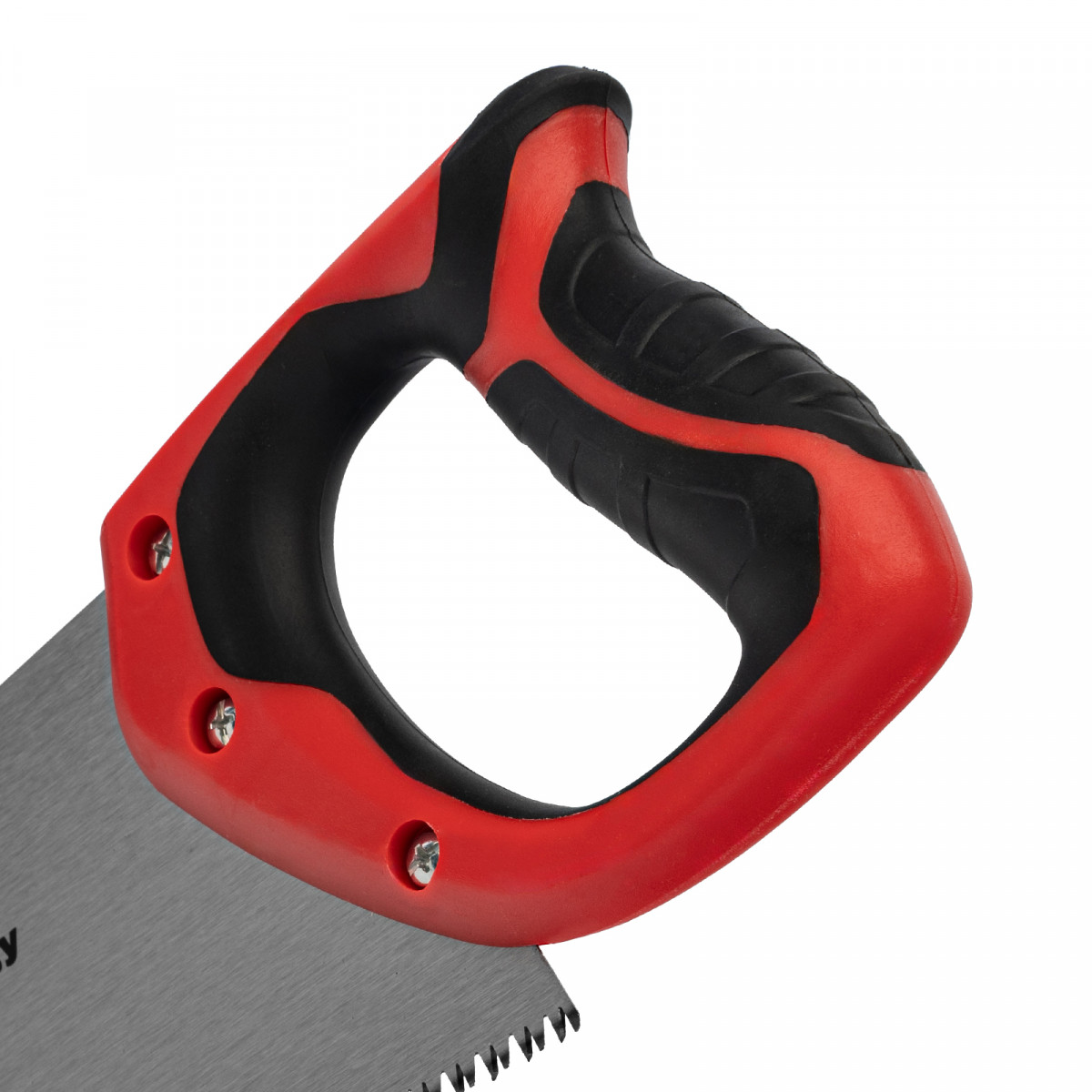 - Комфорт во время работы — эргономичная двухкомпонентная рукоятка с резиновыми вставками имеет усовершенствованный дизайн и удобно лежит в руке, снижая нагрузку на кисть при длительном пилении.