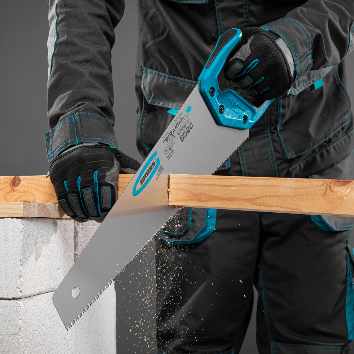Ножовка по дереву "Piranha", 450 мм, 7-8 TPI, зуб-3D, каленый зуб, двухкомпонентная рукоятка Gross
