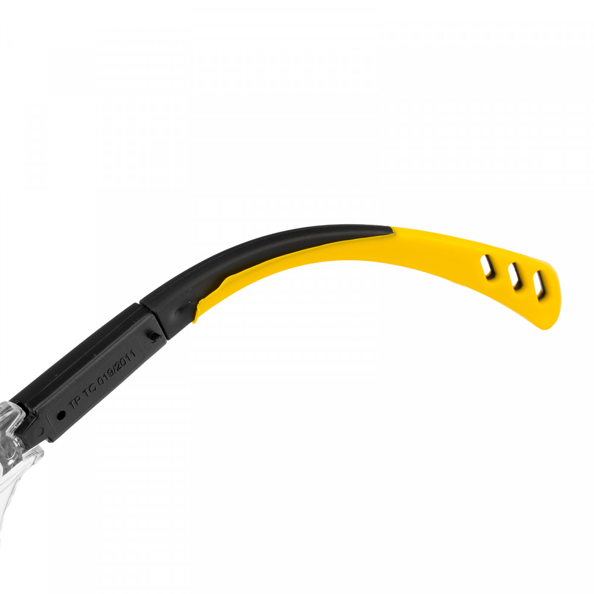 • Продуманная конструкция — особая форма линз обеспечивает боковую и надбровную защиту, а также позволяет носить защитные очки вместе с коррригирующими.
